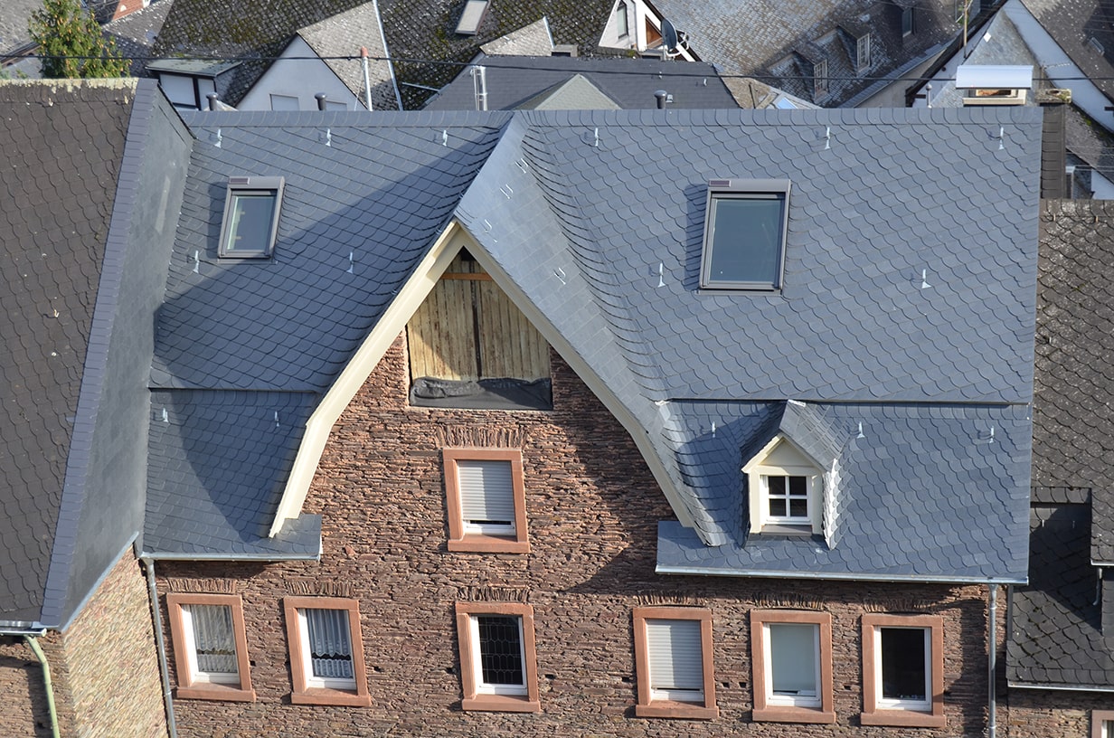 Besonders stolz und dankbar sind wir, dass wir seit vielen Jahren in Teilabschnitten die wertvollen, historischen Dachflächen des Cusanus-Hospitales in Bernkastel-Kues sanieren dürfen.