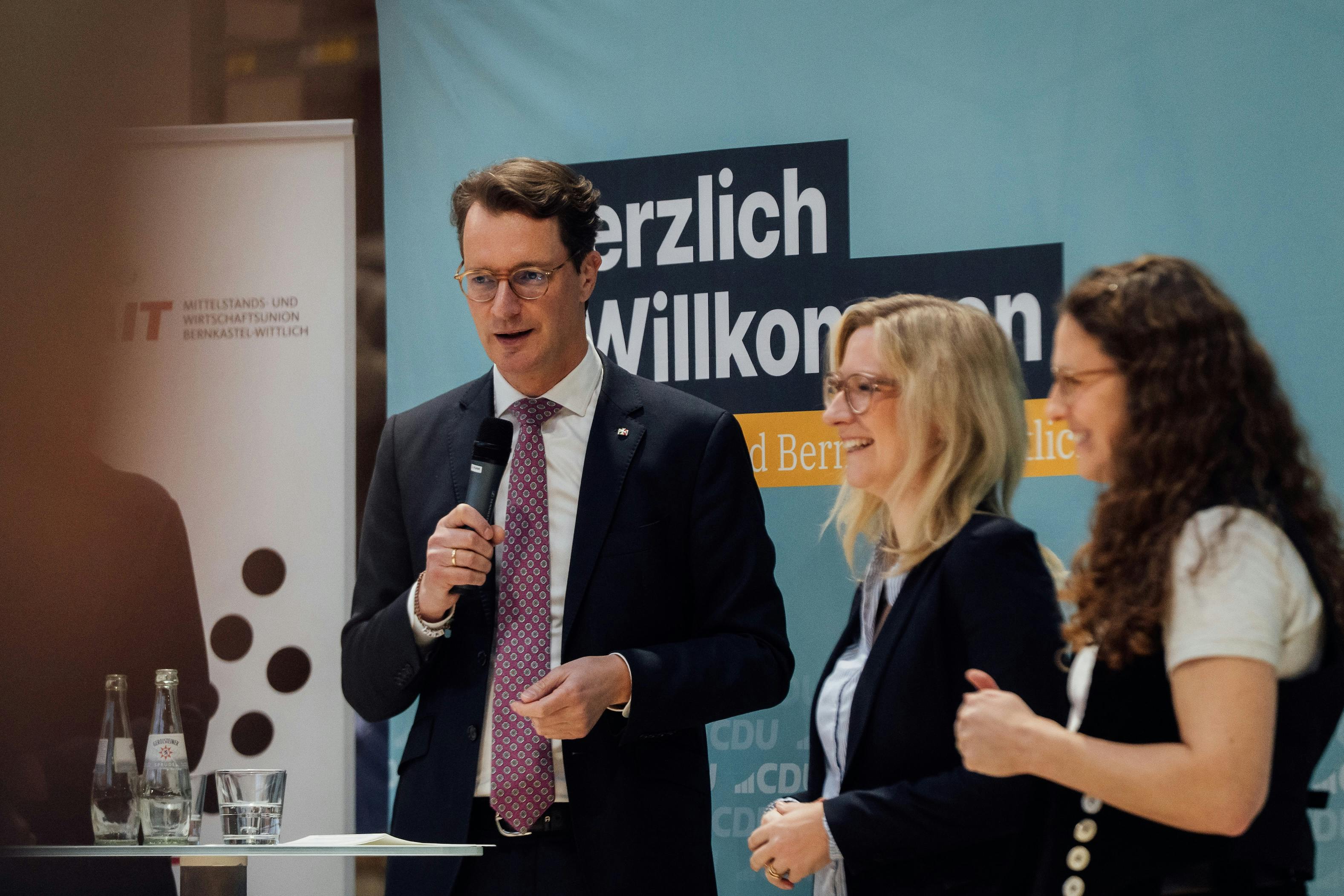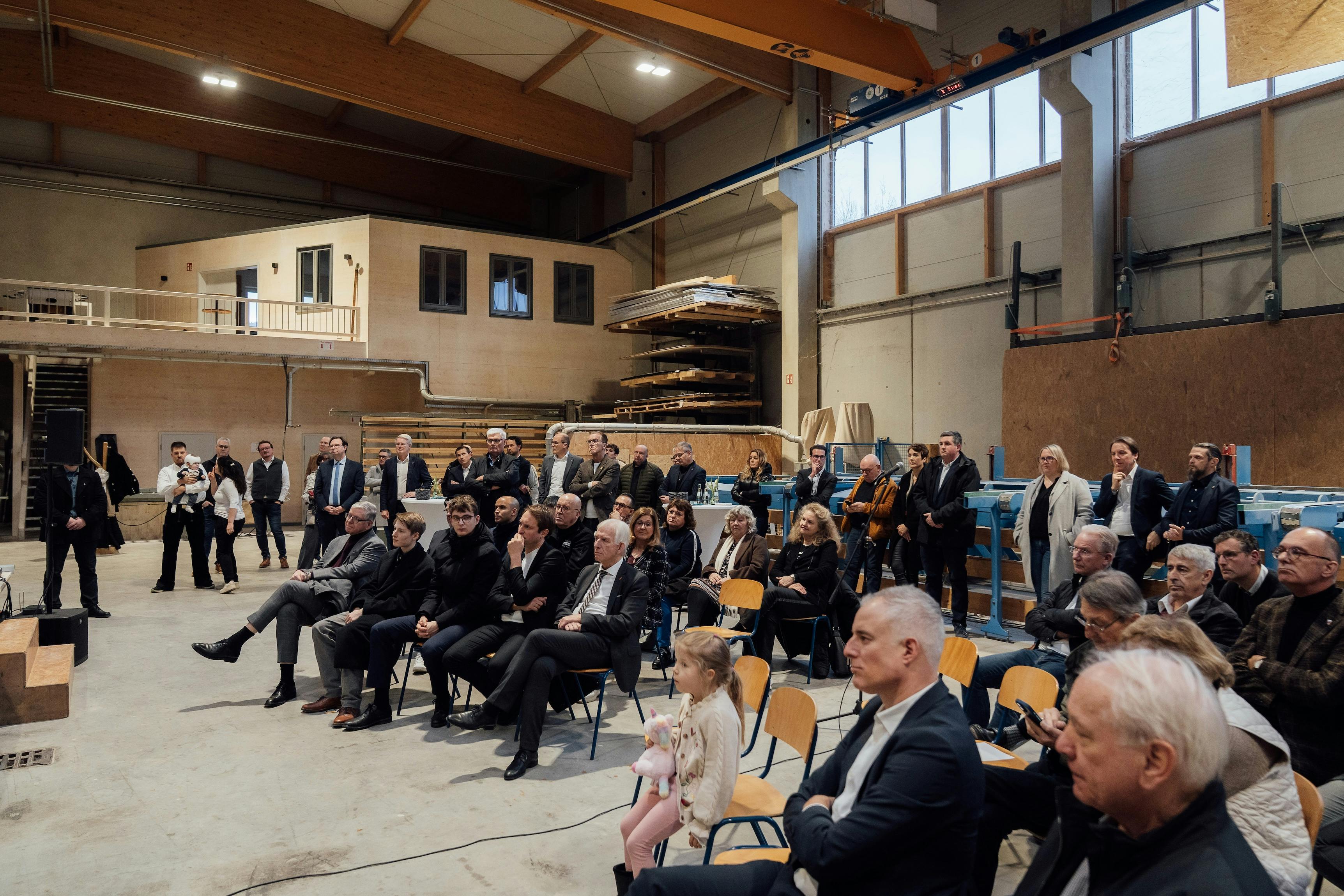 Für einen Austausch rund um die Themen "Zukunft bauen: regional. nachhaltig. wirtschaftlich" war der Ministerpräsident von Nordrhein-Westfalen Hendrik Wüst am 22.01.2026 mit einer Delegation bei uns im Betrieb zu Besuch.